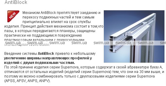 Раздвижная система очень тихая и надежная благодаря механизму AntiBlock, который предотвращает заедание и перекос подвижных деталей, и тем самым обеспечивает длительный срок службы Вашего душевого уголка.