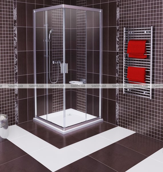 Довольно простой дизайн - дизайн продукции не нарушают какие-либо внутренние вертикальные профили. Это, по сути, лишь безопасное стекло толщиной 6 мм, установленное в элегантные блестящие металлические профиля. Цвет профилей хорошо сочетается с цветом смесителей и других аксессуаров ванной комнаты.