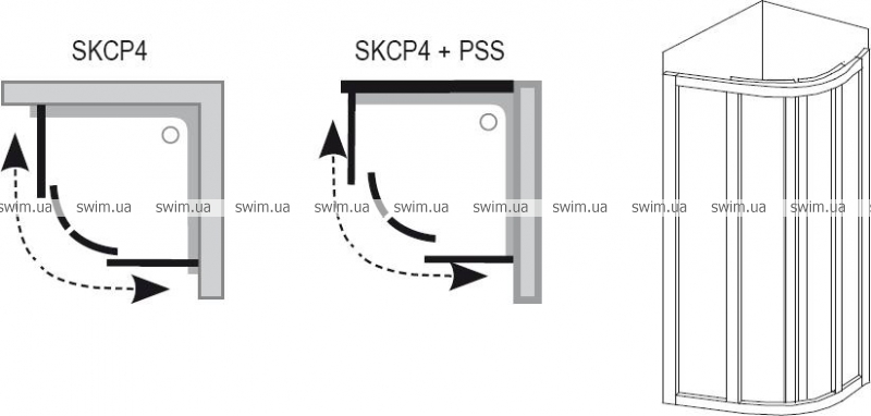 SKCP4 душевой уголок полукруглый раздвижной четырехэлементный