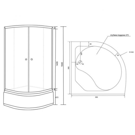 - Габарити виробу (ВхШхД), мм – 1940х890х890