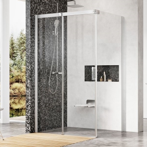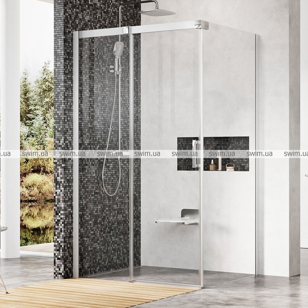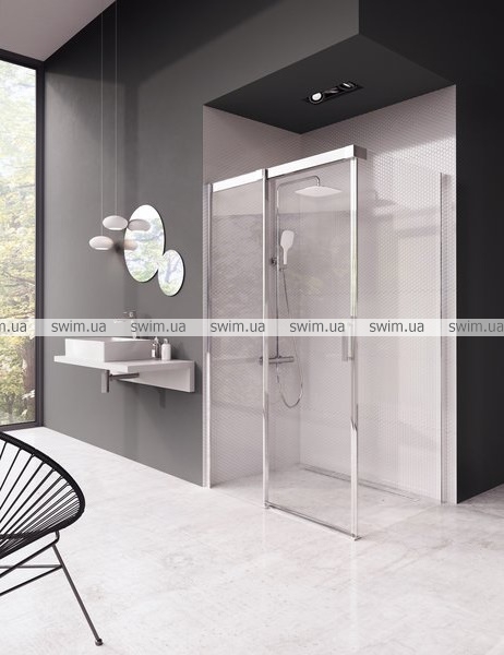 Розкішна розсувна кабіна створена за допомогою комбінації душових дверей і нерухомої стінки. Виберіть необхідні частини залежно від конкретних розмірів Вашої ванної кімнати і створіть максимально зручний душовий простір. Неповторний дизайн з домінуючими масивними верхнім і бічним профілями.