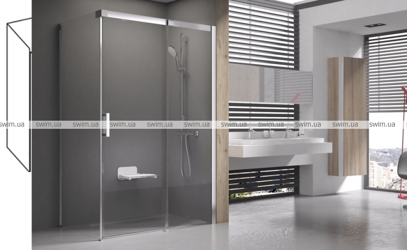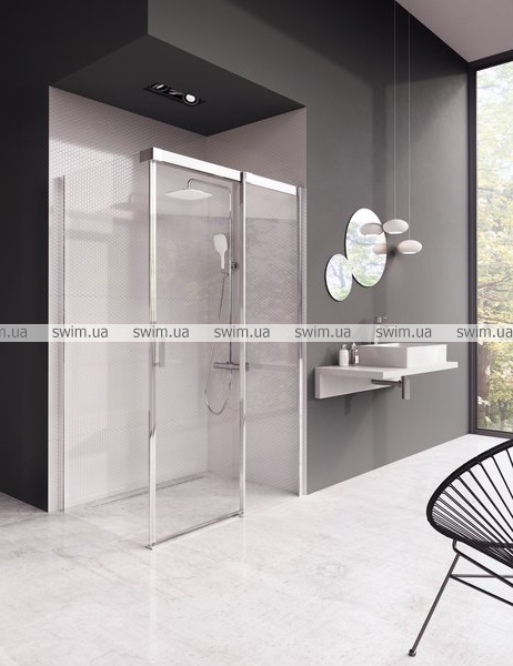 Розкішна розсувна кабіна створена за допомогою комбінації душових дверей і нерухомої стінки. Виберіть необхідні частини залежно від конкретних розмірів Вашої ванної кімнати і створіть максимально зручний душовий простір. Неповторний дизайн з домінуючими масивними верхнім і бічним профілями.