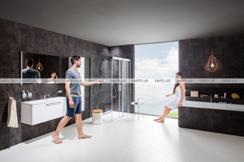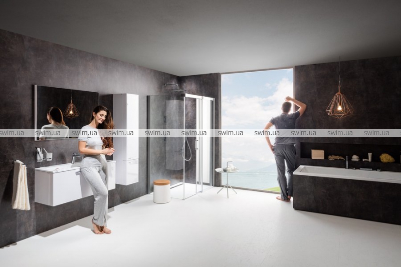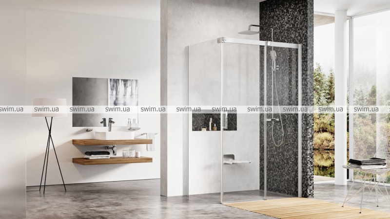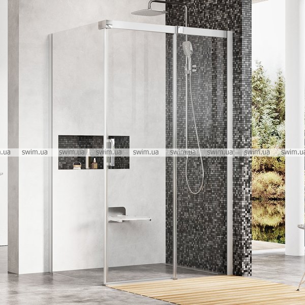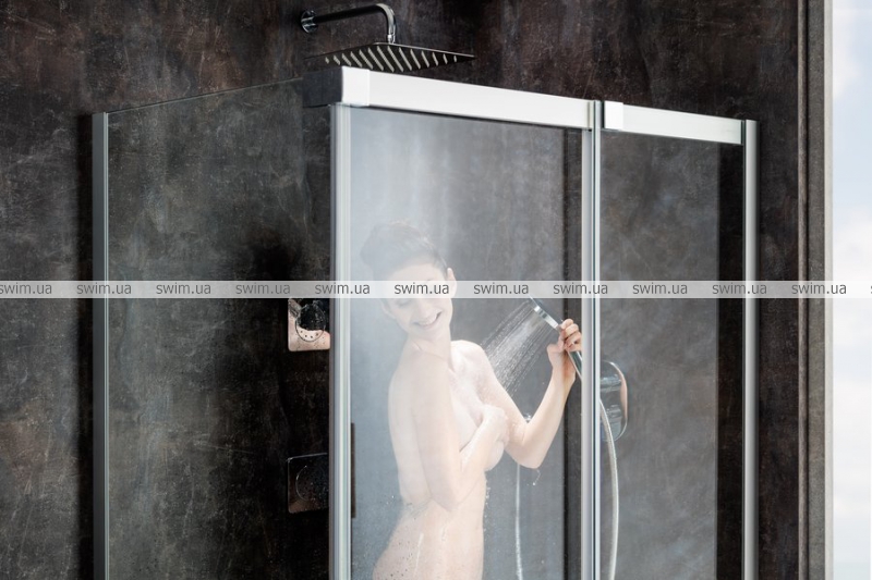 Розкішна розсувна кабіна створена за допомогою комбінації душових дверей і нерухомої стінки. Виберіть необхідні частини залежно від конкретних розмірів Вашої ванної кімнати і створіть максимально зручний душовий простір. Неповторний дизайн з домінуючими масивними верхнім і бічним профілями.