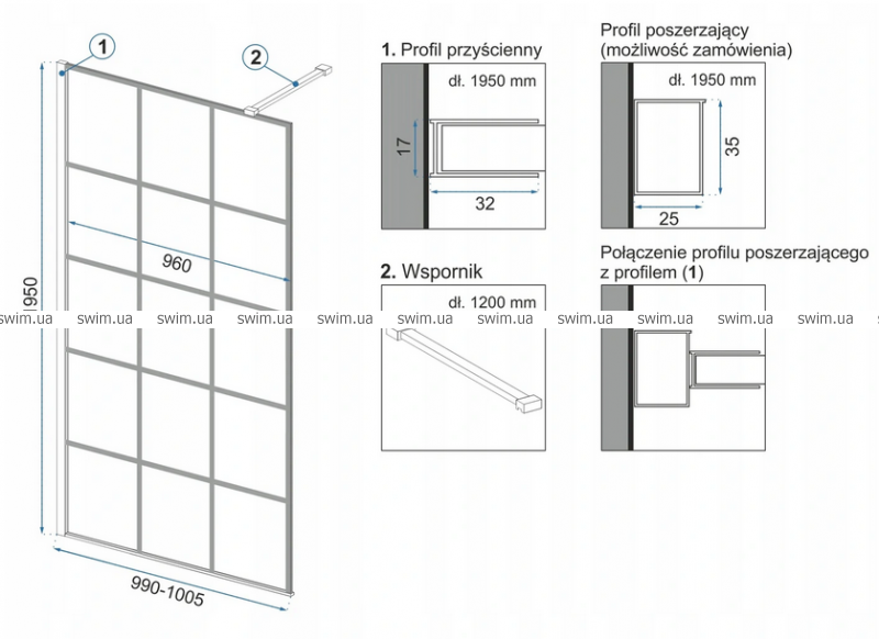 - Скло кріпиться до стіни за допомогою пристінних профілів