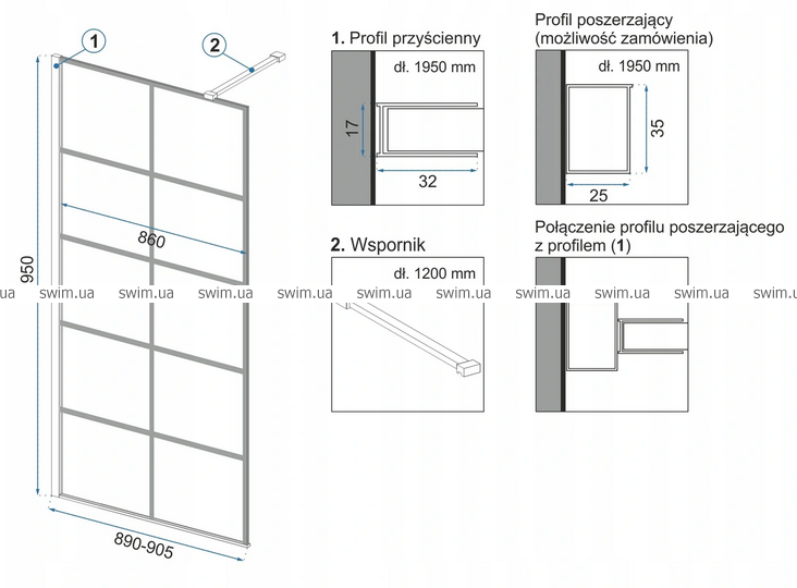 - Скло кріпиться до стіни за допомогою пристінних профілів