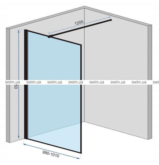 - Скло кріпиться до стіни за допомогою пристінних профілів