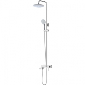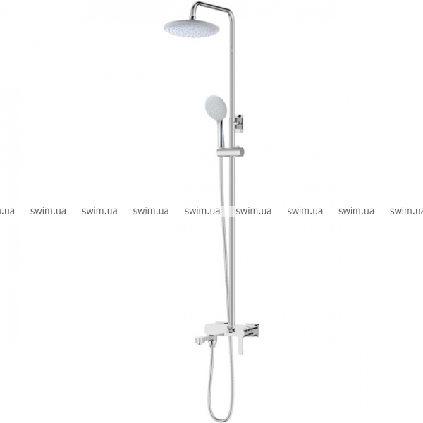 Представлений тут душовий гарнітур АврораMXAL0416 від Mixxen комплектується круглою ручною лійкою діаметром 10 см з душовим шлангом у металевому обплетенні завдовжки 150 см, круглим верхнім душем діаметром 23 см з кронштейном завдовжки 34.6 см, душовою штангою заввишки 150 см з інтегрованим тримачем для ручної лійки, а також одноважільним змішувачем для ванни з поворотним виливом завдовжки 11.6 см.