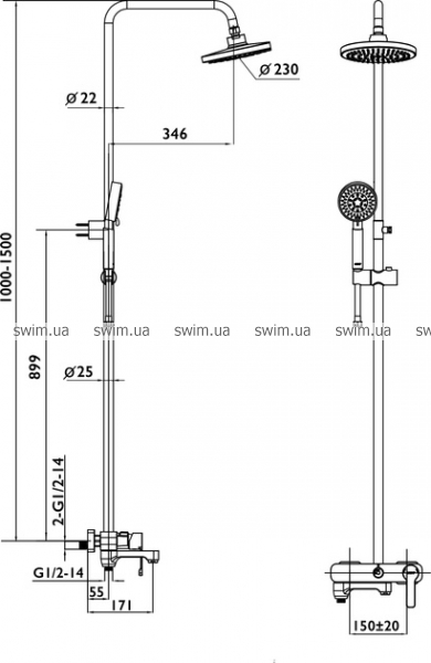 - Розмір верхнього душу, см 23