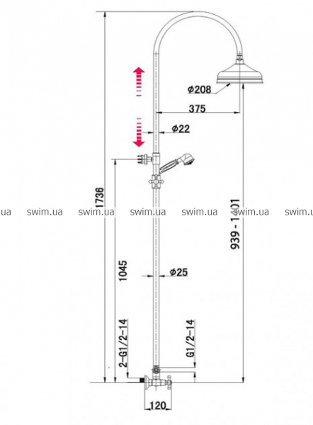 - Комплектація: верхній душ, тримач для душу, душова штанга, кронштейн, ручна лійка, змішувач, душовий шланг