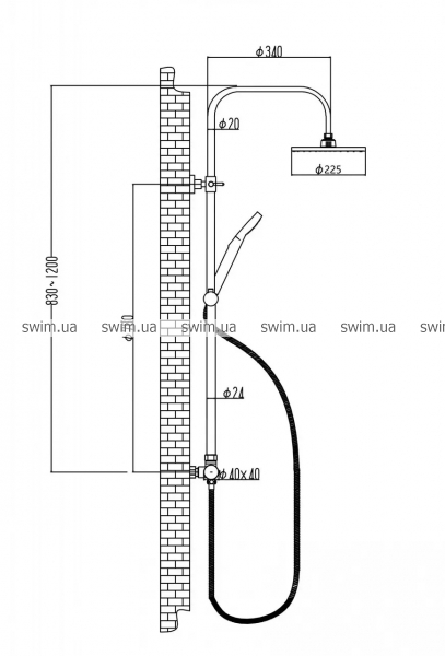 - Комплектація Верхній душ, Змішувач, Ручна лійка