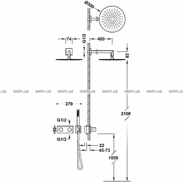 - регулятор потоку та керамічний розподільник на 2 виходи
