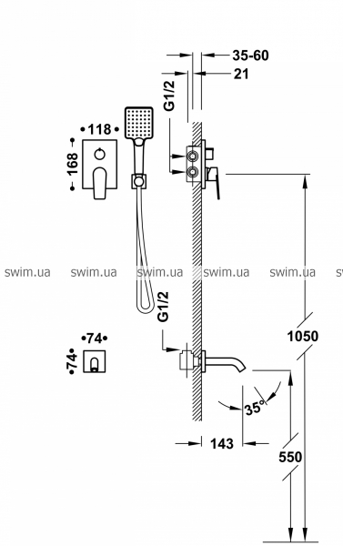 - Виливом для ванни (на вибір)