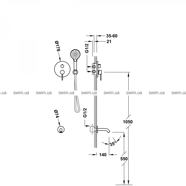 - Знімний душ з антивапняним покриттям Ø 110 мм. (3 типи струменя)