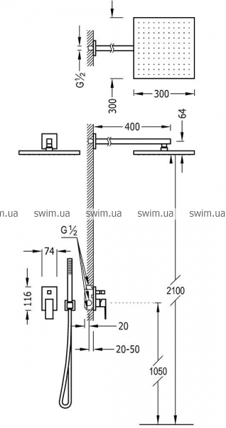 Душовий комплект Tres Cuadro Exclusive 00698002AC