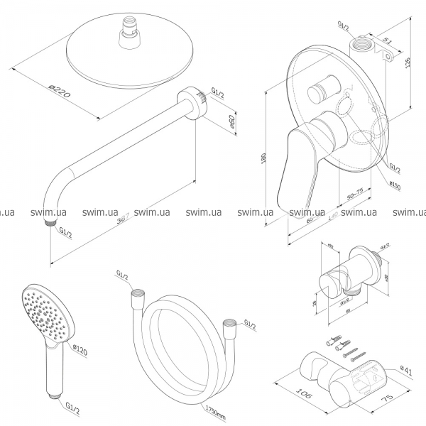 - Ширина виробу(мм) 220 / 60 / 150 / 50 / 106