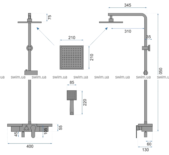 - Ручний душ: 22х85 см