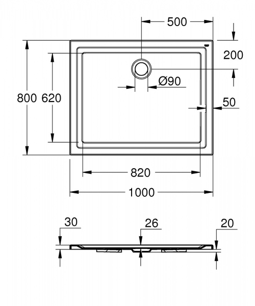 Душовий піддон Grohe Elegant 39306000 100х80 см
