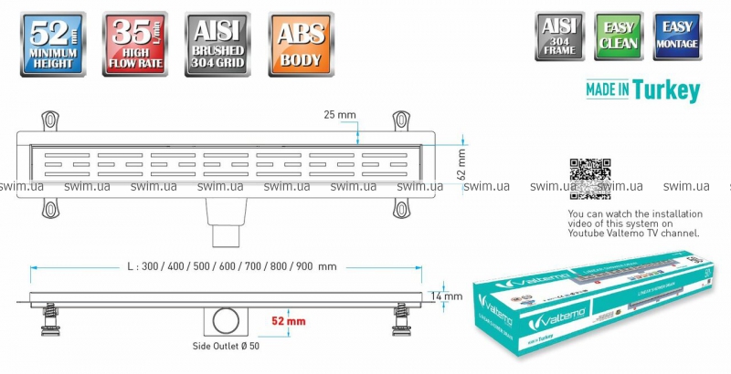 Душовий канал Valtemo Starline Base VLD-562320 60 см