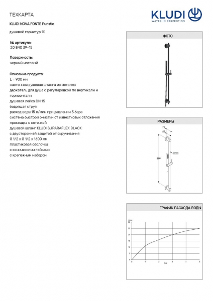 Душовий набір Kludi 1S Nova Fonte Puristic 2084039-15 чорний