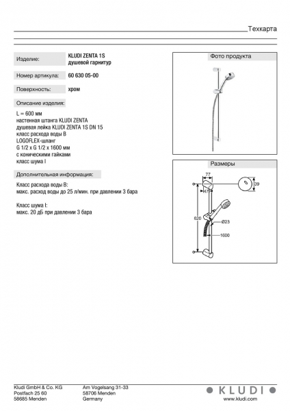 - настінна душова штанга KLUDI LOGO Ø 18 мм