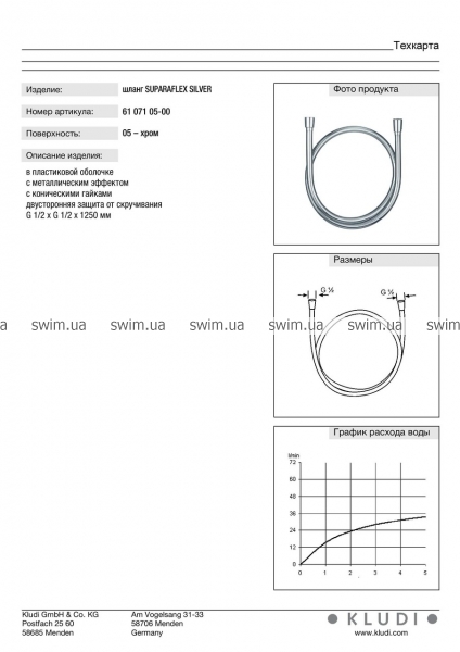 Душовий шланг Kludi Suparaflex 6107105-00 1250 мм