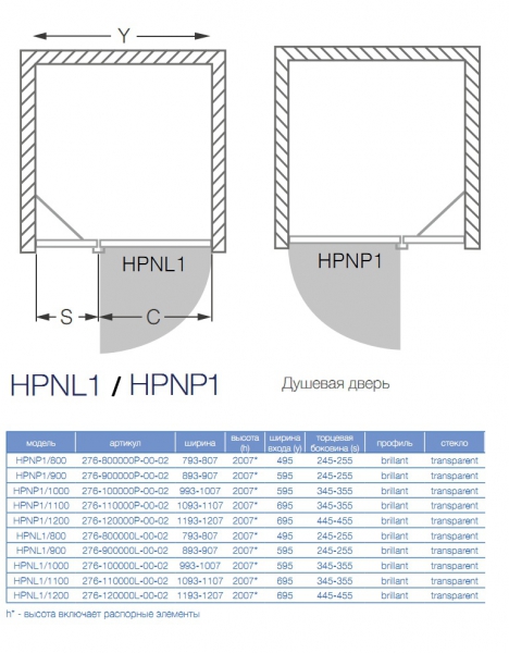 → Дверь душевая Koller Pool HPNL1/900 90х200 см