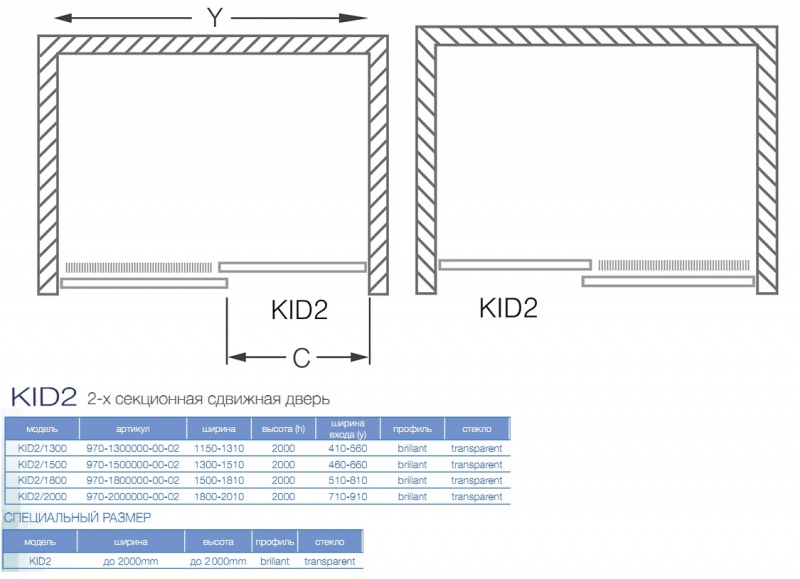 • 2-х секционная сдвижная дверь