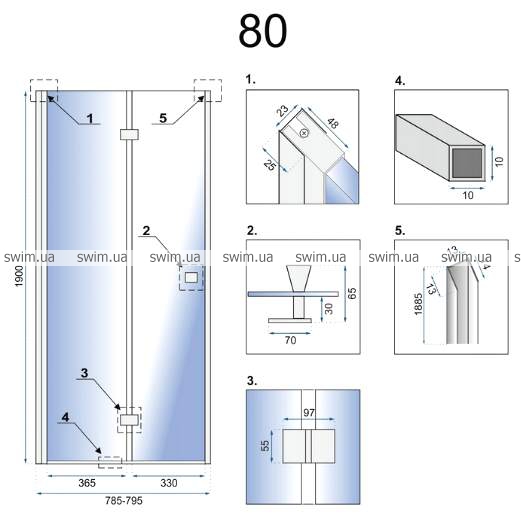 Дверь приспособлена для установки на полу с линейным стоком и поддоном.