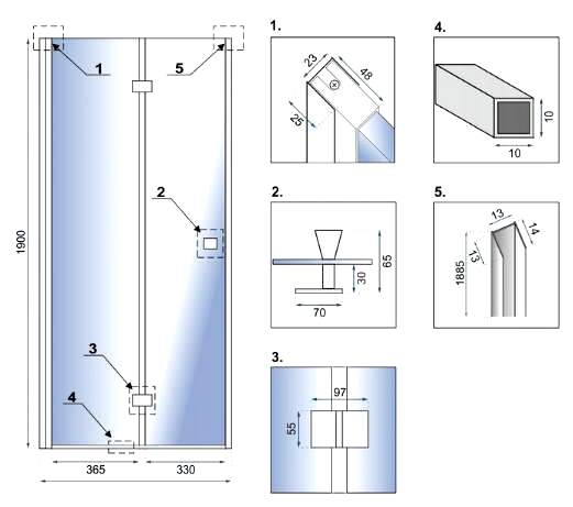 Дверь приспособлена для установки на полу с линейным стоком и поддоном.