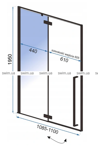 Дверь душевая Rea Black Fargo 110 Rea-K6325