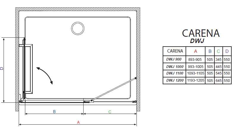→ Дверь душевая Radaway Carena DWJ 34333-01-01N 110х195 см
