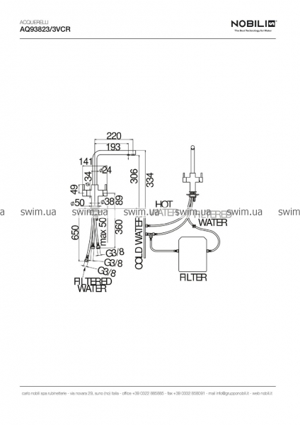 Технічні характеристики та особливості змішувача для кухні Nobili Acquerelli AQ93823-3VCR