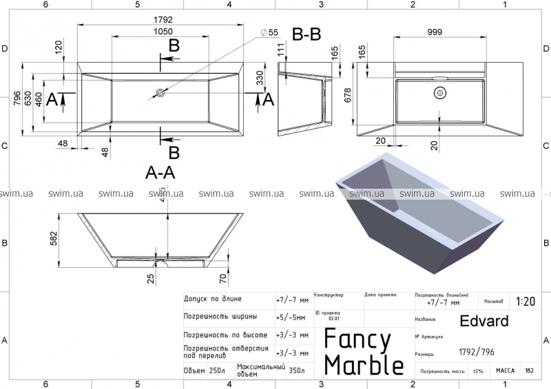 Ванна Fancy Marble Edward 11180102 180х80 см
