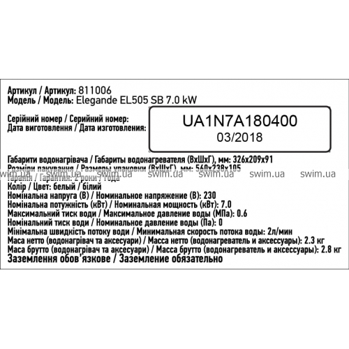 Завдяки тому, що корпус Атлантик Elegande EL505 SB 7.0 квт виконаний із литого пластику, водонагрівач зберігає гарний зовнішній вигляд протягом тривалого періоду експлуатації та є стійким до подряпин.