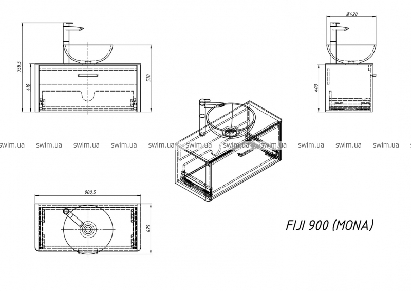 → Тумба з умивальником Mona 420 Fancy Marble Fiji 90-2 Категорія 2