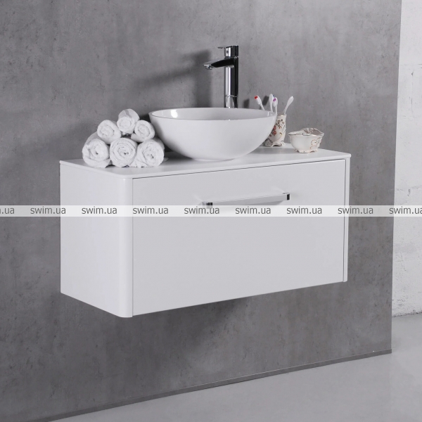 Корпус шафки та фасад виготовлений з плити МДФ, яка покрита вінілової плівкою стійкою до стирання. Висувна скринька встановлена на систему висування "Linken system" LS Box. Виріб призначений для використання у ванній кімнаті та виготовлений із якісних вологостійких матеріалів.