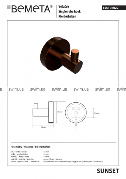 Гачок Amber Bemeta 55106022