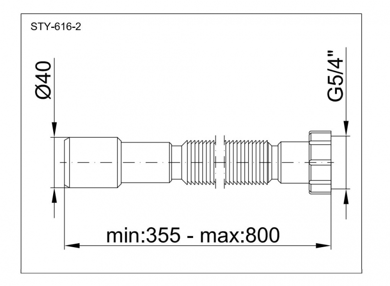 - Длина гибкой трубы: минимум 355 мм, максимум 800 мм