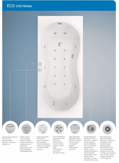 Ванна системы Eco не только приятно расслабит вас после работы, но и обеспечит вашему телу восстанавливающий массаж, поможет снять напряжение и уменьшит давление на позвоночник.