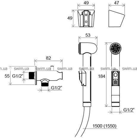 - исполнение: с ручным гигиеническим душем; вентиль выступает в качестве держателя гигиенического душа