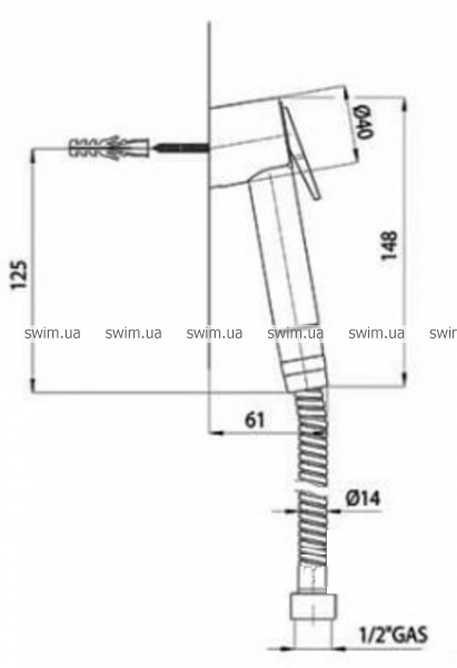 Круглий, одноструминний гігієнічний душ Paloma від Bossini має діаметр 2.5 см, виготовлений з ABS-пластику з покриттям блискучого кольору й обладнується універсальним підведенням для під'єднання під діаметр 1/2".