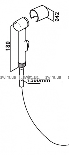 - Комплектація: тримач лійки, ручна душова гігієнічна лійка, шланг