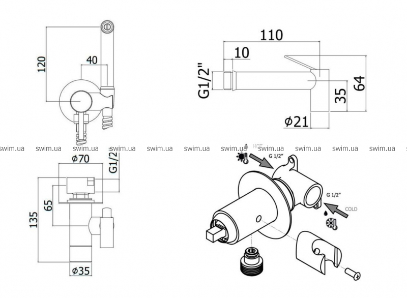 - тримач ручного душу/шлангове підключення