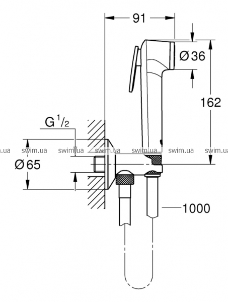 Grohe Tempesta-F Trigger Spray 30 Душовий набір з кутовим вентилем, 1 вид струменя (26358000)