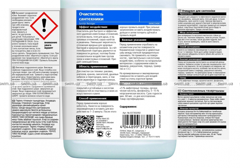 - Сировинна основа: < 5 % неіоногенні поверхнево-активні речовини, органічні кислоти, фосфонати