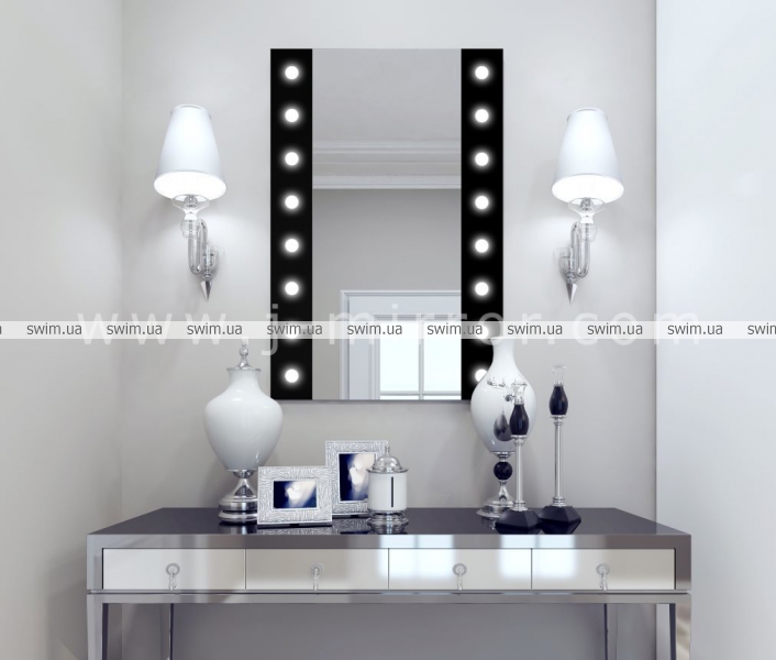 это гримерные зеркала традиционного дизайна, который обычно используется в гримерных или других помещениях для проведения косметических процедур, когда необходим высокий уровень освещенности. Данный дизайн обеспечивает яркое освещение лица со всех сторон без образования теней.
