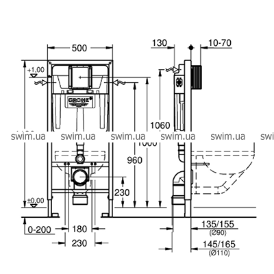 - Подходит для комбинации с напольным или подвесным унитазом (39427000) GROHE Bau Ceramic