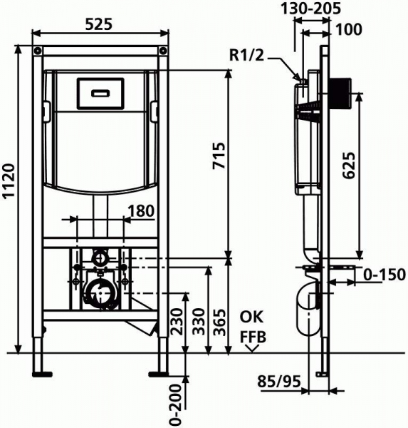 Диапазон регулирования по глубине от передней кромки элемента – 135-155 мм