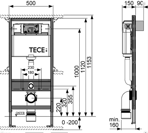 Инсталяционная система Tece 9300000 для подвесного унитаза