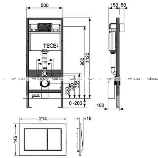 → Інсталяція для унітаза TECE Base 9400414 з клавішею змиву TECEnow чорна матова, кріпленням та прокладкою, 1120мм